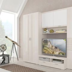 Задняя стенка гостиной выполняется из ЛДВП в цвет корпуса. В серии используется ручка 96 мм (сатин светлый) пластмасса.
