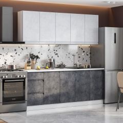 Кухонный гарнитур Вельвет Лайт 2.0 м (Бетон Снежный/Бетон графит/Антарес)