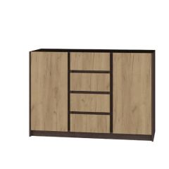 Многофункциональный комод "Флоренция" имеет две секции с распашными дверцами и полками, 4 выдвижных ящика.