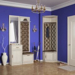 Шкаф для одежды и белья из коллекции "Флоренция" имеет 3 секции с распашными фасадами. Две боковые секции комплектуются полками и штангой для вешалок. В центральной части располагается секция с полками для одежды, 3 ящика для белья. Центральный фасад декорирован высоким зеркалом.