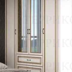 Женева №1 Шкаф 4-х ств. с 2зерк., 2мя ящ. (ЛДСП бел/МДФ софт светл с пат зол)